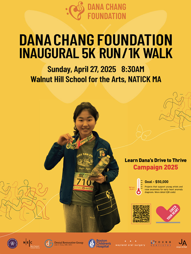 In partnership with Boston Children’s Hospital, this race will take place on Sunday, April 27, 2025, at 8:30 a.m., starting and finishing at Walnut Hill School for the Arts in Natick. There will be both a 5K race and a 1K walk. Click here for more information and registration.