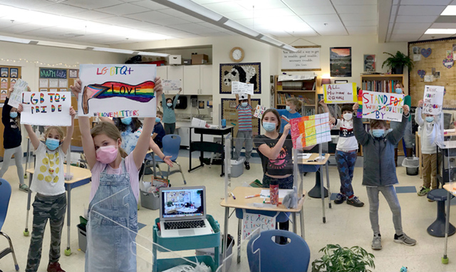 Third graders recently finished reading, Book Uncle and Me by Uma Krishnaswami, a story about a young girl who loves to read and is empowered to support the kind man who offers free books to the community. She helps him to keep his book cart when others were making it difficult for him. Students read and discussed also many other books about social justice issues and thought about the issues they care deeply about. They are creating protest posters to amplify the voices of underrepresented communities and folks who need us all to advocate for equity and empathy.