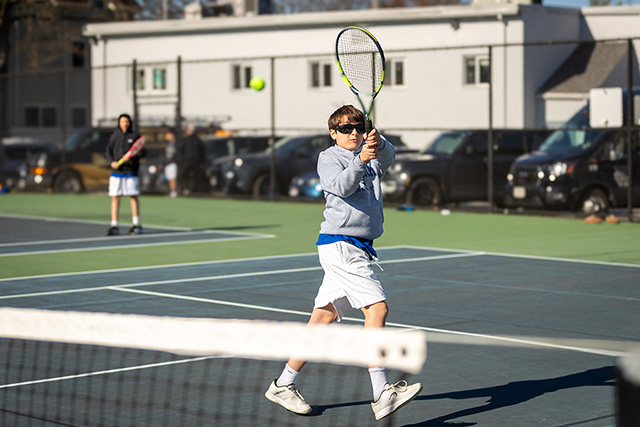 On Wednesday, the varsity tennis team hosted Nobles & Greenough on our home courts at Pequosette Park and battled to a thrilling 4–4 tie. It was truly a win for both teams, as coaches from BDS and Nobles highlighted not only the evenly matched competition but also the shared joy and outstanding sportsmanship displayed throughout the afternoon. BDS earned wins at first, second, and third doubles through consistent play, strong communication, and a one-point-at-a-time approach. Team co-captain and seventh grader Jacob Jarbeau sealed the tie with a 6–5 victory, showcasing tremendous defense and composure. He closed out the match by winning a 40–40 deciding point, forcing an error after a long and exciting rally.