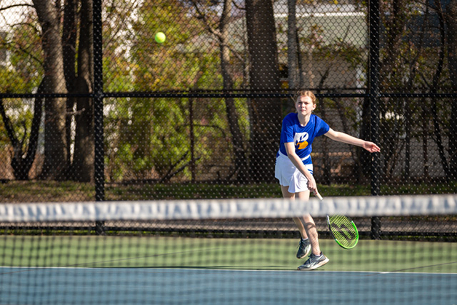 Both of Belmont Day’s interscholastic tennis teams squared off against Beaver Country Day yesterday, and both came away with wins. The varsity team rolled to a 7-1 victory behind strong play from Alex Kadnar and Marco Frazzoli-Cassi. Kadnar won at both singles and doubles as a result of strong serves and skilled play at that net, two aspects of her game she’s been working hard on during practice. Frazzoli-Cassi started his singles match in an 0-2 hole before roaring back for a 6-3 win thanks to sound decision making and a few smart chances. Things were a little tighter in the junior varsity match, with the Blue & Gold ultimately securing a 4-3 victory. Highlights included a dominant performance at singles by Nina Cohen-Perlmutter and a gritty comeback by Duncan Beirne. Beirne was down 1-4 before flipping the script on his opponent and ripping off five consecutive games for a 6-4 win. All in all, it was a great day for Belmont Day tennis.