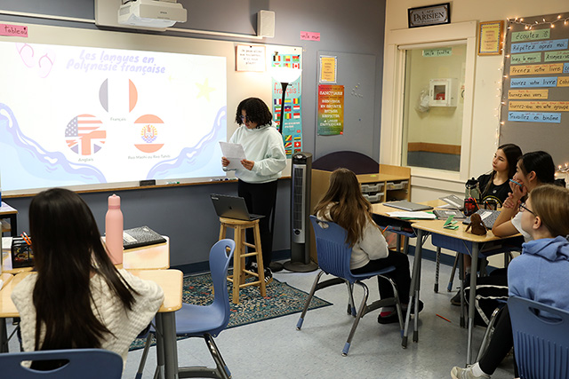 This semester, seventh grade French students have been exploring the francophone world through presentations on countries where French is spoken, researching culture, climate, population, traditional foods, and notable figures. They also examined the impact of French colonization, learning that while many countries retained their native languages, they often lost aspects of their culture and autonomy. Students considered both the development of infrastructure and the spread of French, as well as the political challenges that sometimes followed independence. Overall, they gained a deeper appreciation for the resilience and richness of francophone cultures today.