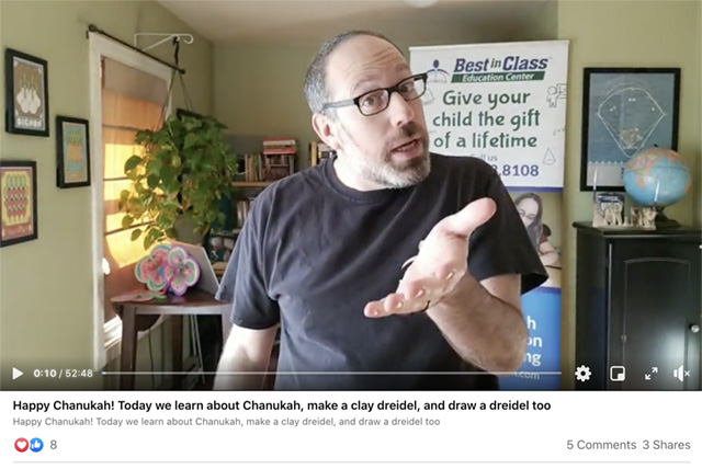 Some of you may remember former Belmont Day after school and substitute teacher and camp counselor, Rich Arum. These days, Rich lives out in Seattle and collaborates with Best in Class Education Center where he provides a series of fun and enriching videos on tons of topics. This week’s video teaches about Hanukkah and the activity is to make a dreidel. An actor at heart, the kids are sure to have a fun time following along. Check out the Best in Class Education Center’s Facebook page to scan all the videos.