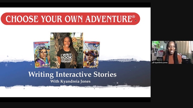 This week was filled with stories and adventures with two wonderful authors stopping by to share their creative processes with students. In fifth grade, author Kyandreia Jones, who has written for the Choose Your Own Adventure series, led students in a CYOA writing workshop on Monday. Jones inspired students to come up with ideas for their own books and they practiced writing in the second person like in the book series. They wrote some gripping, hilarious, and intriguing premises for their stories during the workshop and some even received feedback and critique from the author. Click here to read some of the story premises that the students started. This coming Monday, fourth graders will be participating in the same workshop.