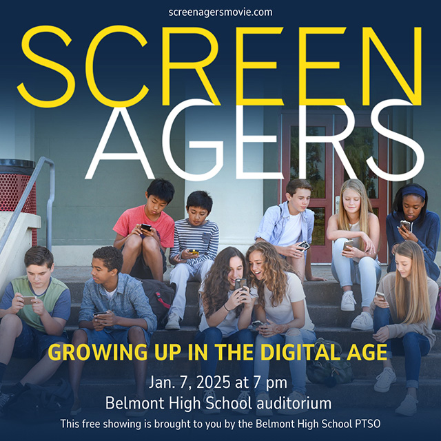 Parents and middle school students are invited to a Screenagers: Growing Up in the Digital Age screening on Tuesday, January 7, at 7 p.m. in the Belmont High School auditorium.