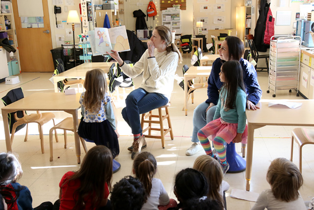 With the winter holidays quickly approaching, kindergarten students have been exploring a variety of celebrations, including Kwanzaa, Christmas, and Hanukkah. We have noticed that many of the winter holidays integrate similar themes: lights and candles, big feasts with family and friends, and singing special songs. To help us learn more about the ways in which our class community celebrates Hanukkah, we invited two parents to share their traditions with the class. Amelia, Clara Lake’s mom, and Morgan, Mira Reddy’s mom, came to talk about some of the festive food eaten at this joyful time and do a fun activity around latkes. Chag Sameach (happy holidays) to all who celebrate!