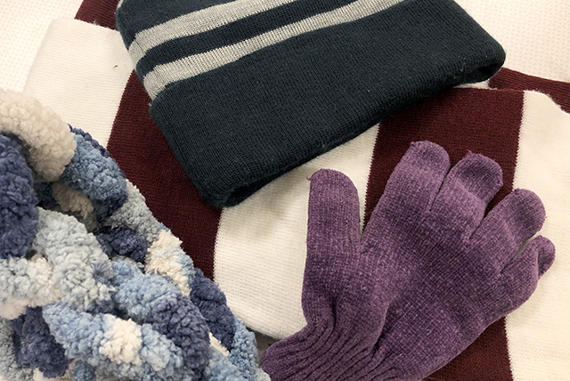 - Sweaters, sweatshirts, pants, gloves, hats, coats, boots, and shirts (gently used)