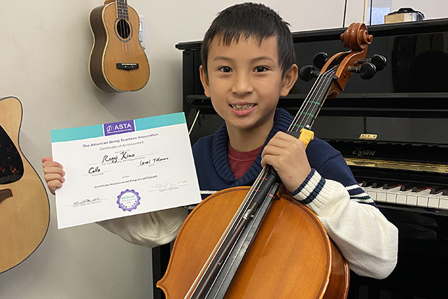 Congratulations to third grader Ruyi Xiao who last month participated in ASTA CAP (American String Teachers Association Certificate Advancement Program), a national string curriculum that provides definite goals for students across the country, from beginner to advanced levels, through regional examinations. Exams were held at Dana Hall School of Music. Great job, Ruyi!
