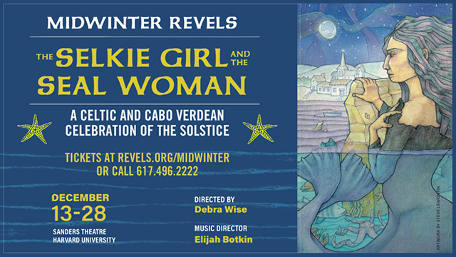 Catch Belmont Day sixth grader Sabine Rooney as she joins the cast of Revels for The Selkie Girl and the Seal Woman: A Celtic and Cabo Verdean Celebration of the Solstice. In a small fishing village off the shores of Galway Bay, a community gathers in the local pub to celebrate the season. A child enters looking for a package that may have been delivered for his mother, who comes from another coastal town–in Cabo Verde. Songs and dances are shared, and the pub dissolves into a portal for fantasy with a transformative retelling of the Selkie story, a Celtic myth about living between two worlds. Irish songs, jigs, and reels share the stage with dance, drumming, and traditional songs from Cabo Verde. In the Revels tradition, a new community is catalyzed, and with it hopes for a new year.