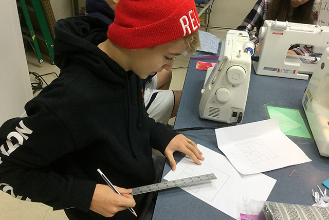 Middle school students in quilting and knitting arts electives have been making great progress on their individual projects over the past few weeks. In quilting, the students have been working through the process of first deciding on a figurative or geometric quilt style, then planning and designing the layout. Next, they have been carefully measuring and cutting fabric pieces to ensure that they will fit accurately in the finished quilt.