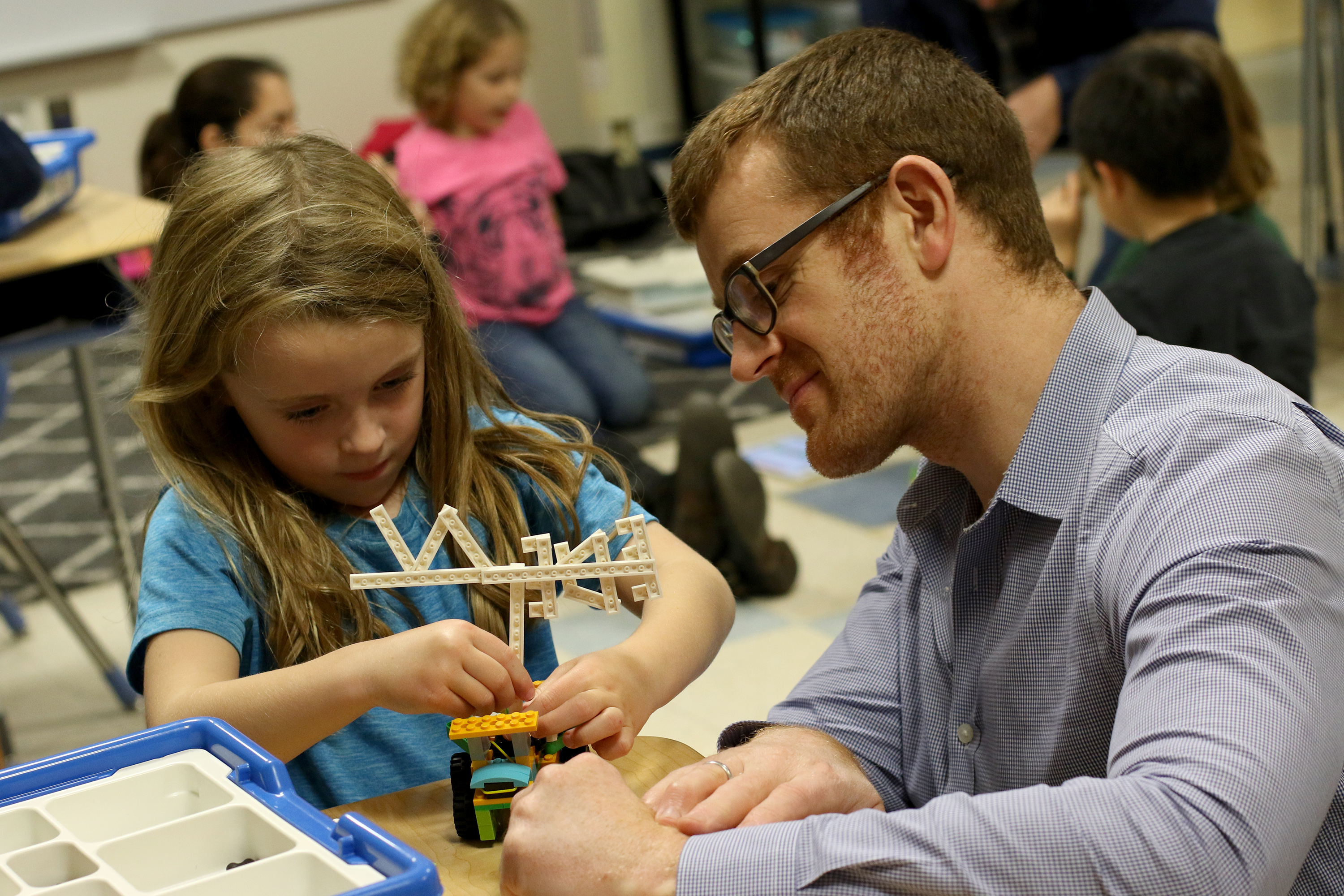Second and fifth grade students enjoy an activity during cross-graded partners last Friday.