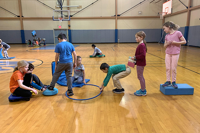 In pre-k and kindergarten classes, students reviewed jumping, hopping, and leaping locomotor skills, catching, as well as non-locomotor core and stability skills with balancing. Using a rocket launcher for catching and balance board for stability, students continued to develop their skills. By students revisiting these skills, they will build confidence and strengthen their abilities. Students continued to develop their body control and locomotor skills (gallop and side slide) with musical songs, “Act Like You Are In A Zoo” and “We are Moving Around”. In addition, kindergarten students engaged in exciting and fun group games using the parachute.