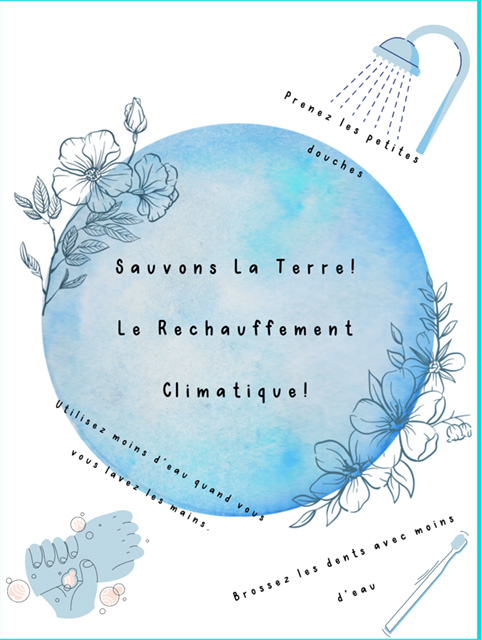 Following a short unit on weather vocabulary, seventh grade French students learned about various initiatives that can positively impact the effects and course of climate change. They explored some infographics and watched an informational video on the subject. In groups, they used the platform Canva to prepare their own posters (in French, of course) featuring actions we can all take. The posters were then displayed around BDS. The students also filmed a number of public service announcements to complement the messages of the posters.