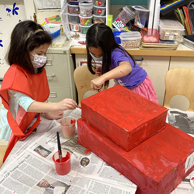 It has been a very busy week for our youngest learners. On top of our daily schedule of learning and fun, this week brought two exciting opportunities for further exploration. First was the greeting of fresh snow which we embraced by engineering tunnels and collecting ice for a science lesson on how ice melts and how different compounds such as salt affect the melting process. We also celebrated and learned about the Lunar New Year. We read several books about the holiday and we’re making lanterns, decorating red envelopes, and creating and painting a dragon.