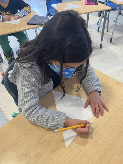Ms. Skinner’s fifth graders construct model suitcases to carry the items they would most value were they to emigrate. The project is based on their reading of “The Arrival” by Shaun Tan.