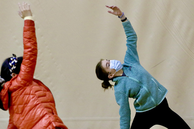 The timed mile, the beep test, and the fitness circuit are all physically and mentally challenging activities on this winter’s athletics circuit. In an effort to provide balance in the program, Coach Tzelnic’s offering strikes a quite different note with middle school athletes. Every six days, students rotate through Tzelnic’s mindful yoga practice, where the focus is on calming body and mind through gentle stretching and guided breathing. Despite some initial skepticism, athletes have appreciated the calm at the end of a busy school day and look forward to their time on the yoga mats in the Downing Gym.