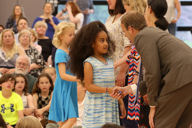 10:15 a.m.: Middle School Moving Up begins with comments by Middle School Head Liz Gray; grade 5 moves up to grade 6