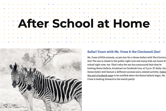 Our after school team has put together a website chock full of wonderful activities for students when school time has ended for the day. These activities continue our program’s mission of fun with the intention of enhancing skills, spurring creativity, and building community. Each week the team will update the site with new options. Click here to visit the site.