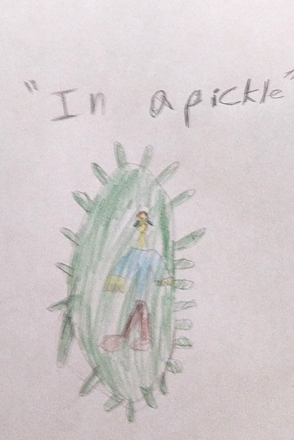 In theater arts, fourth and fifth graders discovered words and phrases that Shakespeare coined. Fourth graders were given a list of words and asked to research the words and share something interesting about them. Fifth graders were given a list of idioms such as “in a pickle.” They chose two idioms to illustrate. Some of the words the fourth graders researched were rant, tranquil, majestic, cater, pendant, and radiant.
