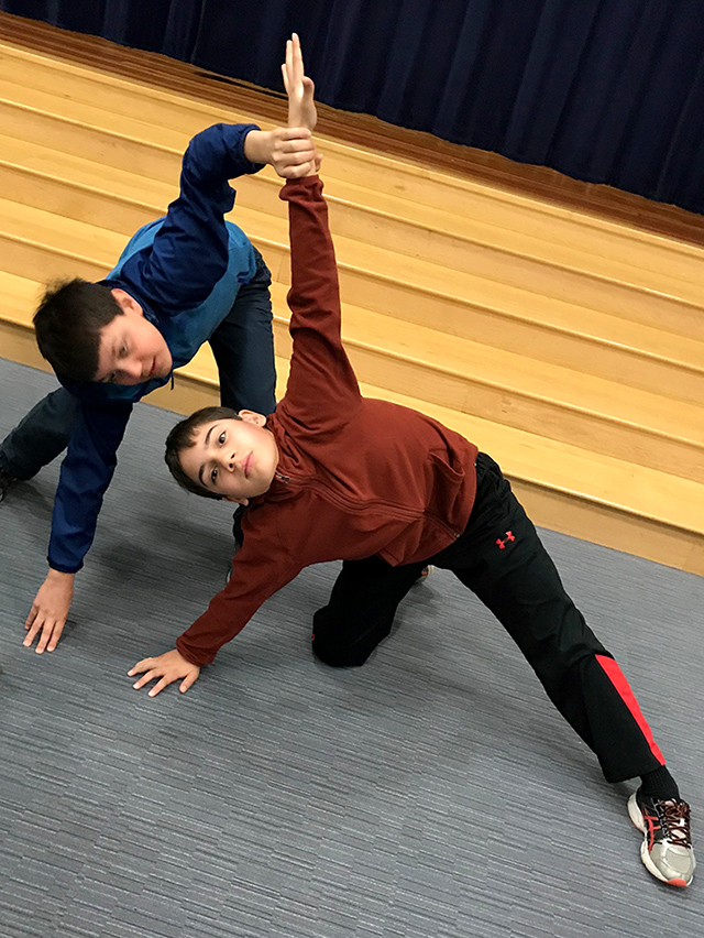 With instructions to include a beginning and ending pose, unison and other movement patterns, students eagerly began sharing and testing out their ideas. Observations and discussions ensued as they worked to revise and refine their dances. Groups proudly performed their finished pieces for their peers. After enthusiastic applause, students shared positive comments about the creative choices of each group.