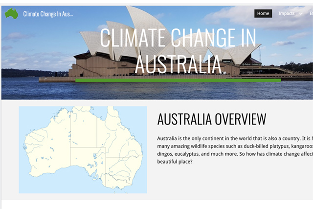 Seventh grade students in group 2 completed a project in which they chose a geographic region of personal interest, researched the effects of climate change in that region, and creatively presented their findings. Students learned about a range of topics, from the impact of wildfires in Australia, the global response to melting ice in Antarctica, to the impacts of climate change in the USA. They also chose a range of media to present their research: from innovative websites and artistic slideshows to informative newspaper articles. Use the links for a sampling of the students’ outstanding work.