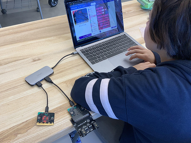 Students in fifth grade have begun programming their final project in technology class. Students are using the Scratch or Microsoft MakeCode programming environments and either a MakeyMakey or micro