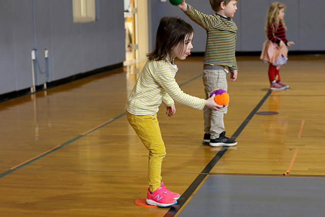 In pre-kindergarten and kindergarten classes, students continued to work on their locomotor skills through animal movement by engaging in warm-up games like