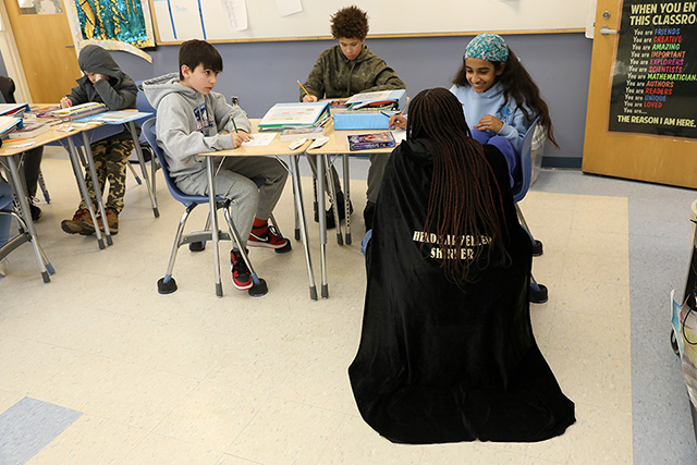 All sixth graders were given the option to receive their own signed copy of the book in anticipation of that month’s genre focus–historical fiction–which will be introduced during English class that week. We’ll have several other copies of the book in the Erskine Library and middle school English classrooms for any interested students to borrow and read.