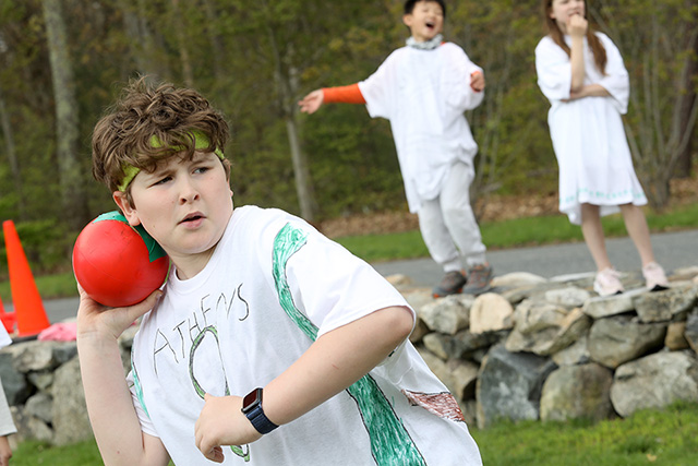 In fourth grade, the study of Ancient Greece made its way out of the classroom and into their physical education classes! The young Olympians learned all about the spirit of the Olympic games and competed this week as members of an Ancient Greek city-state (Megara, Sparta, Corinth, Argos, and Athens). These student-athletes are not only learning about the ways of the world from way back when, but seizing the opportunity to display cooperation, competition, teamwork, and sportsmanship throughout the day. The students trained for a full slate of events (3-stade race, standing long jump, shot put, javelin, discus, relay race, meta boxing, and chariot race) that tested each competitor mentally and physically. However, the real victory was seeing each Olympian celebrate all efforts on the day! Hooray to all competitors!