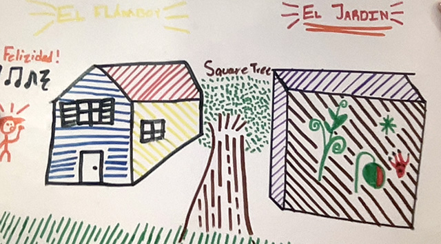 Sixth grade Spanish students are learning about Puerto Rico while learning vocabulary related to housing. They engaged with authentic materials throughout the unit, described a house from an online real estate advertisement, learned characteristics of Puerto Rican Spanish, and engaged in a project where the students applied reading, listening, writing, and oral skills. First, students read the transcript of a podcast called Casitas in the Bronx, which is named after a native tree from Puerto Rico and also the name of a community garden in the Bronx. They listened to the podcast as a group, identifying new vocabulary before moving to independent work. They then drew a picture that represented the story, using the vocabulary they knew, and then presented the picture to the class without notes, After students described their picture to the group, they recorded their descriptions on their computers. Click here for a Canva presentation of their final work.