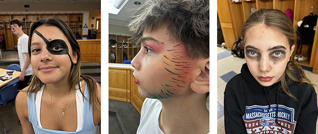 Students in the seventh and eighth grade special effects makeup elective have been hard at work bringing the characters of the fifth grade play, The Pirates of the Currybean, to life! Over the past few weeks, students in the elective have collaborated to design, test, and perfect the makeup looks for each character in the production. From swashbuckling pirates to quirky islanders, every detail has been carefully crafted by our talented makeup artists.