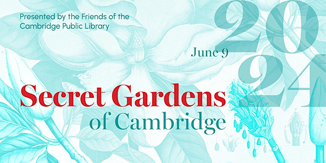 The Secret Gardens of Cambridge is a signature fundraising event for the Cambridge Public Library. This special self-guided tour has featured more than 200 individual gardens in Cambridge, from a hidden swimming pond in a small backyard oasis to a garden that springs to life with thousands of bulbs each year; from a woodland tree-lined front walk to guided contours of border plantings and decorative pots.