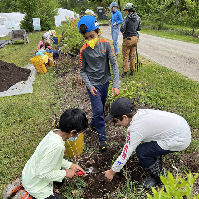 Last Friday on Community Service Day, the second graders spent the morning at Gaining Ground in Concord. Gaining Ground is a local nonprofit that grows and distributes 100% of its organic produce to local hunger relief agencies–in 2021, Gaining Ground grew and distributed over 120,000 pounds of organic produce! That morning, our students washed storage bins, picked weeds, and mulched beds as they helped the farmers in their work to fight food insecurity. The work at the farm was a culmination of a year-long service-learning project that linked work in our own BDS garden with fundraising, education, and community action. The work with Gaining Ground supports the second grade social studies curriculum where students have been mapping food labels to better understand where produce comes from, the environmental and nutritional impact of transporting food, and equitable access to fresh food.