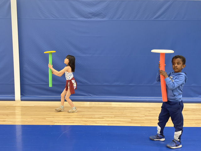 During the Frisbee unit in physical education, our students get to fling it all: foam Frisbees, beamos, plastic discs, and even giant Frisbees that we launch onto Claflin Field from the top of the hill behind the Osborne Tennis Courts in order to set distance records. And in the midst of all that flinging and fun, we also practice proper form, keeping our thumb on top, toes pointed to the side, bringing our arm across our body, stepping forward, and ensuring that our follow-through points in the direction we want our frisbee to go. Frisbees, after all, can be a frustrating implement, as they are subject to crosswinds and strange rotational whims, but when we learn to control them, they become like flying saucers that we’ve sent on important missions to the far reaches of the gym or the field.