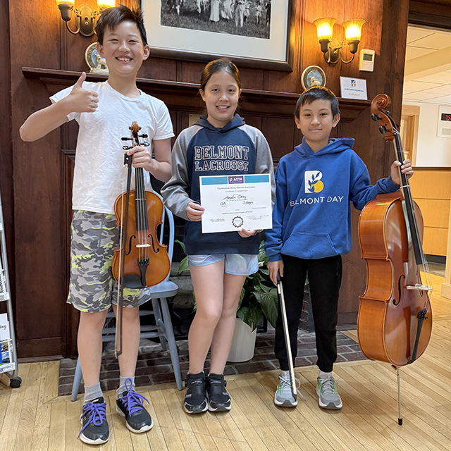 Last month third grader Ruyi Xiao and fourth graders Amelia Chang and Adam Cong participated in ASTA CAP (American String Teachers Association Certificate Advancement Program) a national string curriculum that provides definite goals for students across the country, from beginner to advanced levels, through regional examinations. Exams were held at the Dana Hall School of Music. Congratulations to these young musicians!
