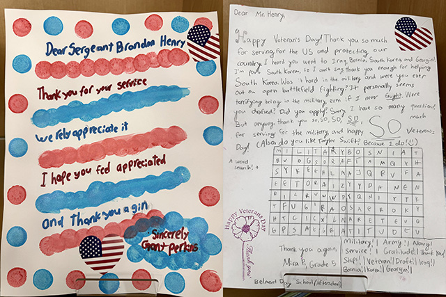 As part of our After School program for November, we have been exploring themes of gratitude, thankfulness, and service. Students in grades pre-kindergarten to eighth grade wrote letters in cross-graded groups to veterans connected to the BDS community, under the guidance of Ms. Fross and the After School teaching teams. These letters were then mailed to veterans for a timely arrival this week. The students did an incredible job with thoughtful, expressive, detailed letters that highlight appreciation, recognition, and acknowledgement. The responses from the veterans regarding how meaningful this gesture is to them have been a delight to receive and pass along to the students.