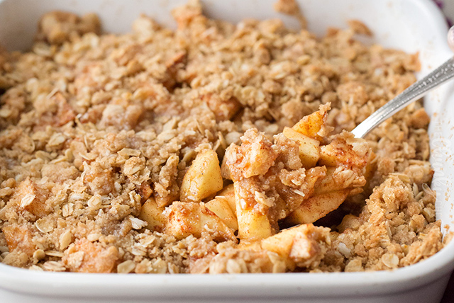 - Prepare the topping: Combine the oats, flour, both sugars and salt in a bowl. Use a pastry blender or 2 knives to work in the butter until topping resembles coarse meal. Sprinkle evenly over the apples.