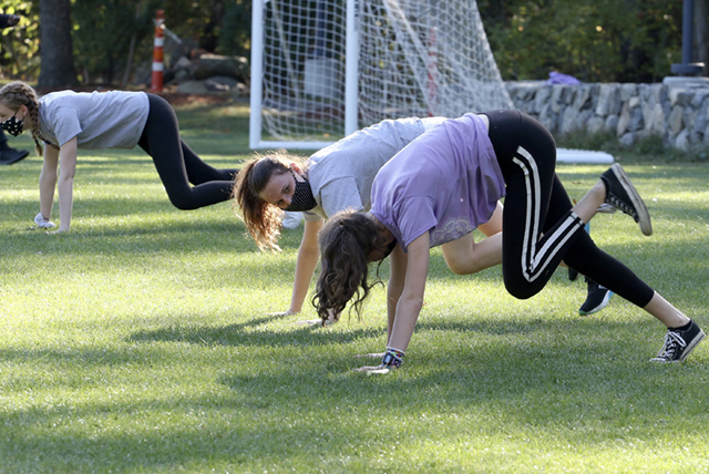Yoga time for eighth graders in the fall athletics training camp program.