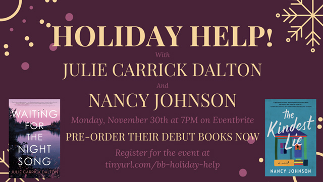 Need to find a few great books to give as gifts or read yourself his holiday season? Join Belmont Books and local first-time authors, Julie Carrick Dalton P ’08 ’12 ’15 ’19, and Nancy Johnson, discuss their debut books, Waiting For the Night Song by Dalton, and The Kindest Lie by Johnson, and hear their many recommendations for engaging reads at this time of year. Click here to pre-register to attend this online event.