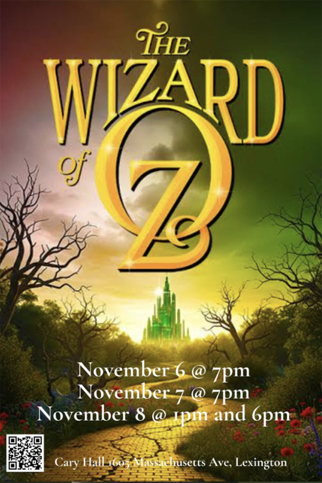 Get ready to be swept away “over the rainbow” as Menotomy Musical Theatre’s young performers bring Frank Baum’s beloved classic, The Wizard of Oz, to life with music, heart, and a touch of magic. Performances will be on Thursday, Friday, and Saturday, November 6-8, at Cary Memorial Hall in Lexington.