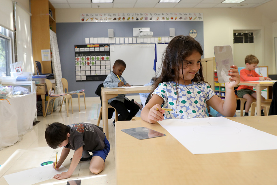 Kindergartners Draw What They See In the Mirror
