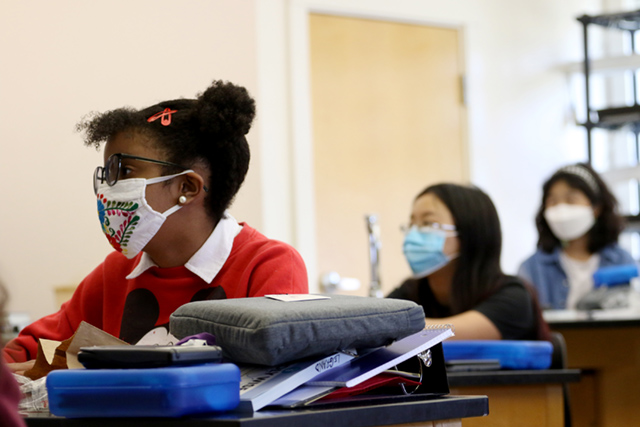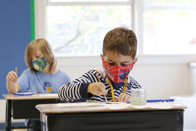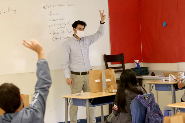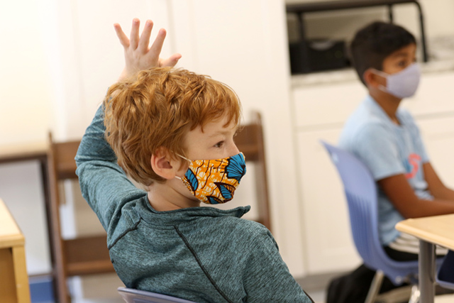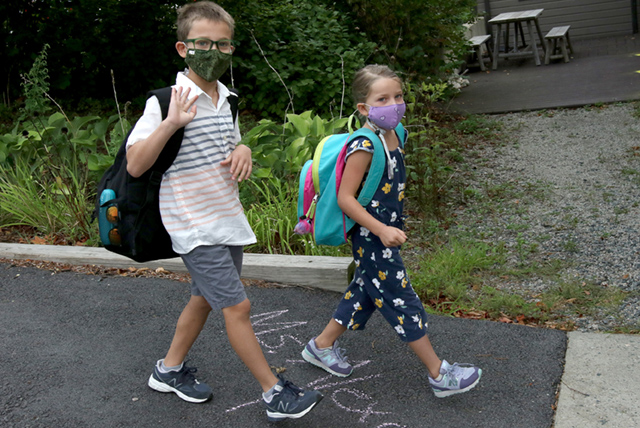Ms. Nairn’s fifth graders enjoy a class activity outside on the first day of school.