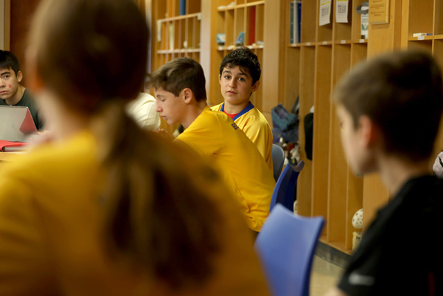 This week in eighth grade social studies, students participated in their first roleplay of the year. Roleplays are an important part of our eighth grade social studies curriculum—they are a hands-on way of learning that gives students the opportunity to consider issues from positions other than their own and require students to work collaboratively. This roleplay was of a public school board hearing to determine whether the town would instate mandatory Saturday school. Students were assigned to the pro-Saturday school or anti-Saturday school positions or to the school board itself. The roleplay occurred in the Kiva on Tuesday. Students did a great job building, supporting, and clearly articulating their assigned roles. Each class’ school board made a different ultimate ruling: one ruled against mandatory Saturday school, one ruled for mandatory Saturday school, and the other split the difference by instituting a mandatory half-day Saturday filled with extra time to meet one-on-one with teachers and community building student meetings.