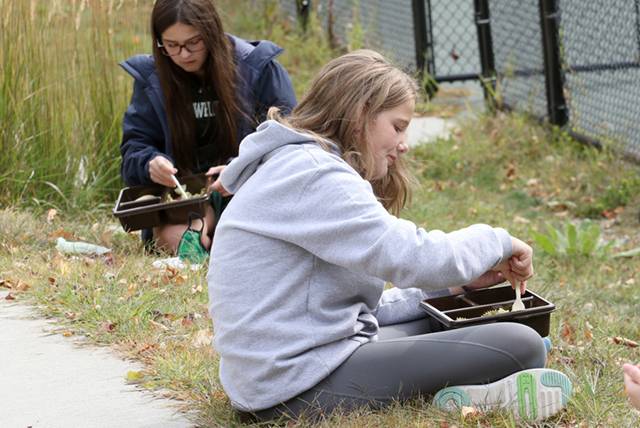Ms. Pryor and Ms. Vitale’s kindergartners enjoyed a nature hunt in the woods and meadows near the school.