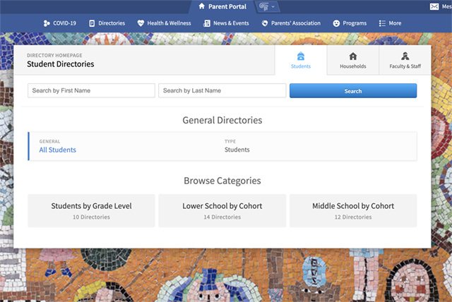 As of this week, our use of DirectorySpot has ended and parents will no longer be able to access the school directory there. The school directory is now available on Veracross Parent Portal. On the Parent Portal, the tab for Directories is located in the top-level navigation bar. You can search there for students, households, classes, cohorts, and more. If you have any questions regarding the directory, contact us at communications@belmontday.org.