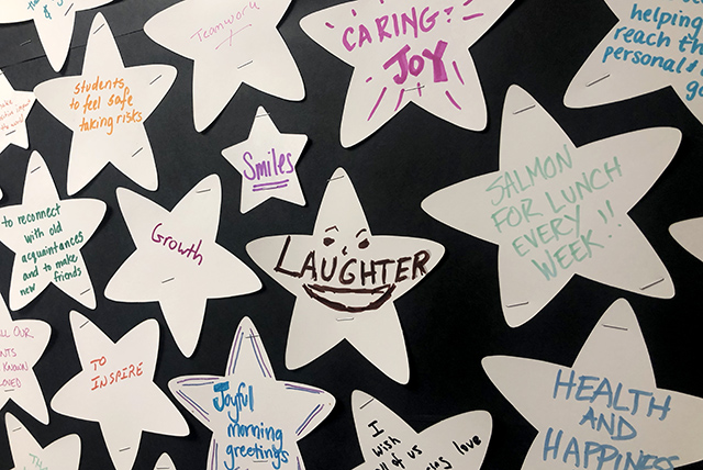 I would also like to thank the parent community, without whom the library couldn’t function on a daily basis and this project could not have happened. The profoundly generous support that came out of the Wonder auction was inspiring and energizing. In recent days, parents have stopped in to check on the progress to find out “Was this how you envisioned it?” “Are you happy with it?” The trust the parent community has placed in us as educators tasked with rethinking our library reflects the trust you grant us each day in caring for and educating your children. It is striking and humbling. So, please join us in this essential community space—walk through our waves of shelves, and, as a fourth grader noted after our visit from author Erin Entrada Kelly, “get lost in a book.”