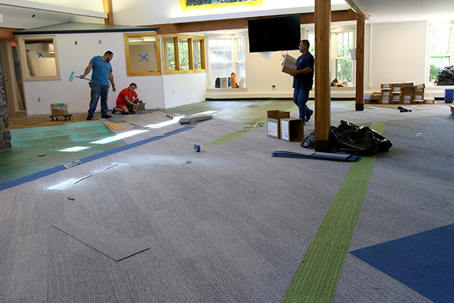 - new carpeting designed with line-up areas was placed