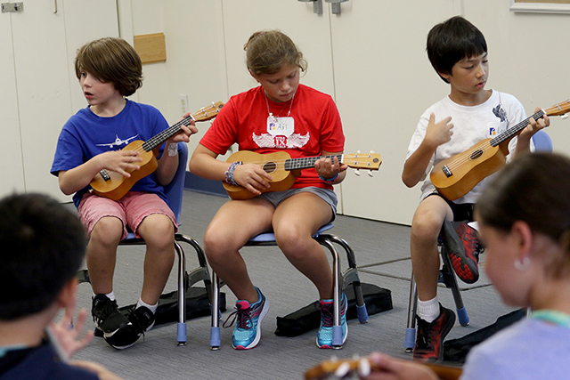 Our fourth grade students are kicking off the year learning the basics of songwriting through the popular genres. To understand more about rock and pop, students listened to a variety of songs from The Beatles. Students then learned A minor 7, C major, and F major chords and jammed together as a class on the ukelele. The class is ready to rock on to a great year in music!